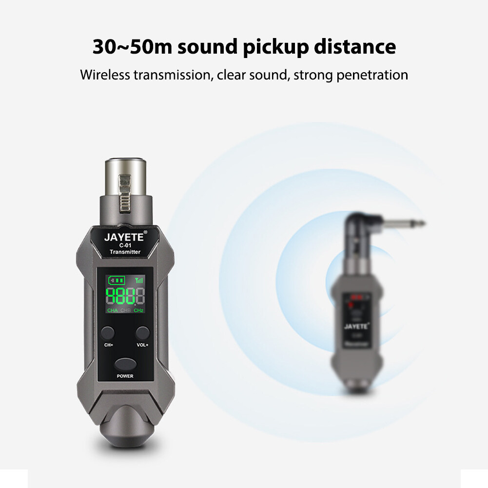 1. Strong performance. Transmitters and receivers can be used with any dynamic microphone, mixer, PA system. Provides stable wireless transmission without cables. Its range can be up to 100 feet under normal conditions. 30m-50 pickup distance, wireless transmission, clear sound and strong penetrating power.