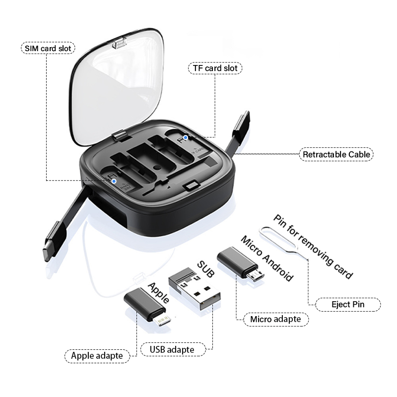 5 In 1 60W Fast Charging Data Cable Storage Box Multi-function Mobile Phone USB Type C Charge Line Organizer Case with Recover Card Pin