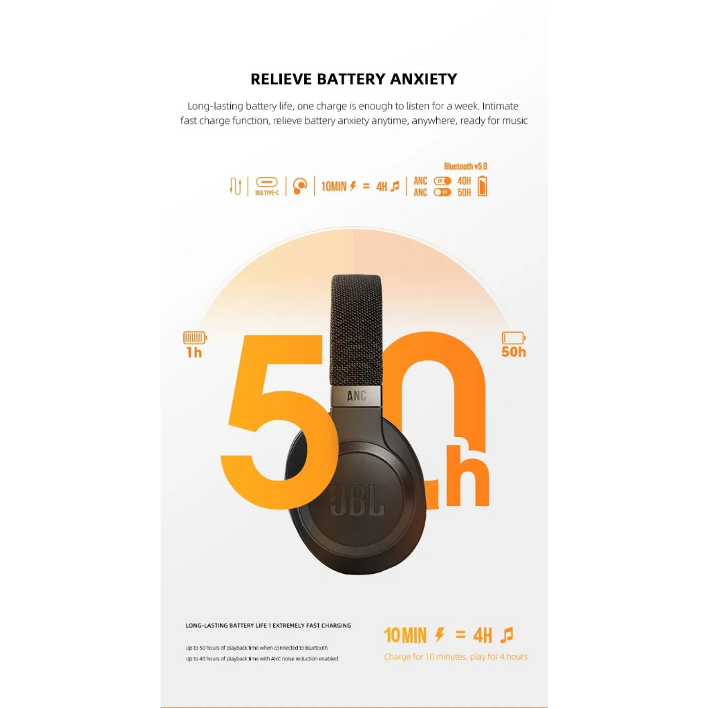 JBL Live 660NC Wireless Over-Ear Noise Cancelling Headphones with Long Lasting Battery and Voice Assistant