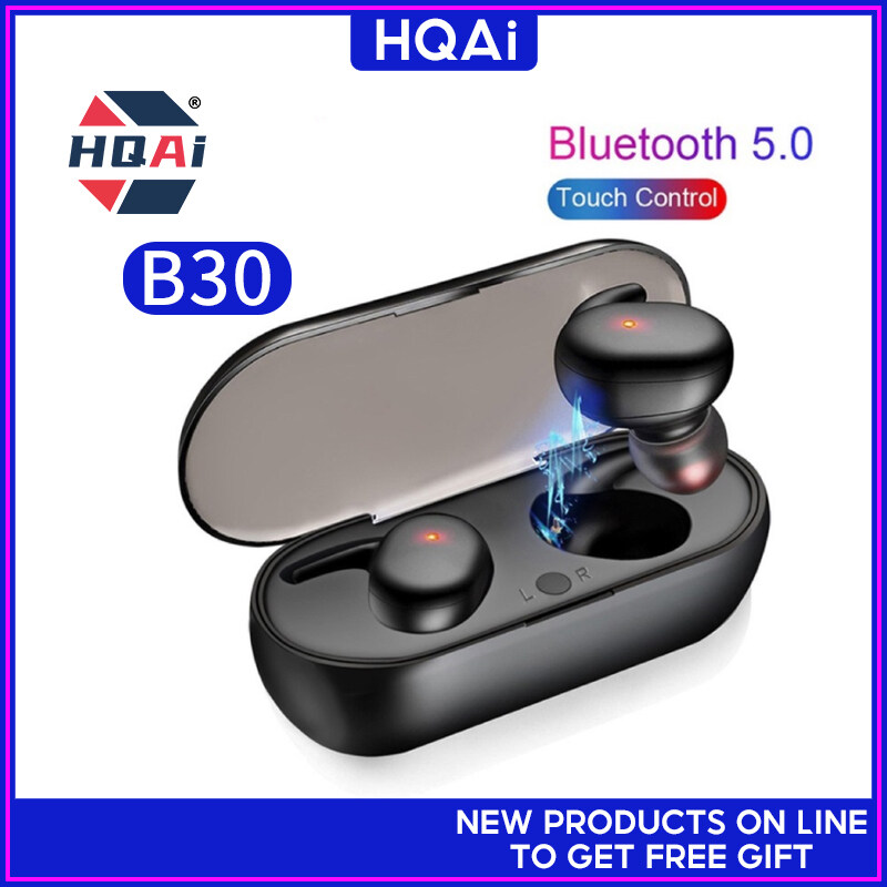 HQAi B30 TWS Bluetooth Earphones Sports Headset 5.0 Stereo Game HeadPhones Waterproof Wireless Earphone Touch Control Bass Earbuds