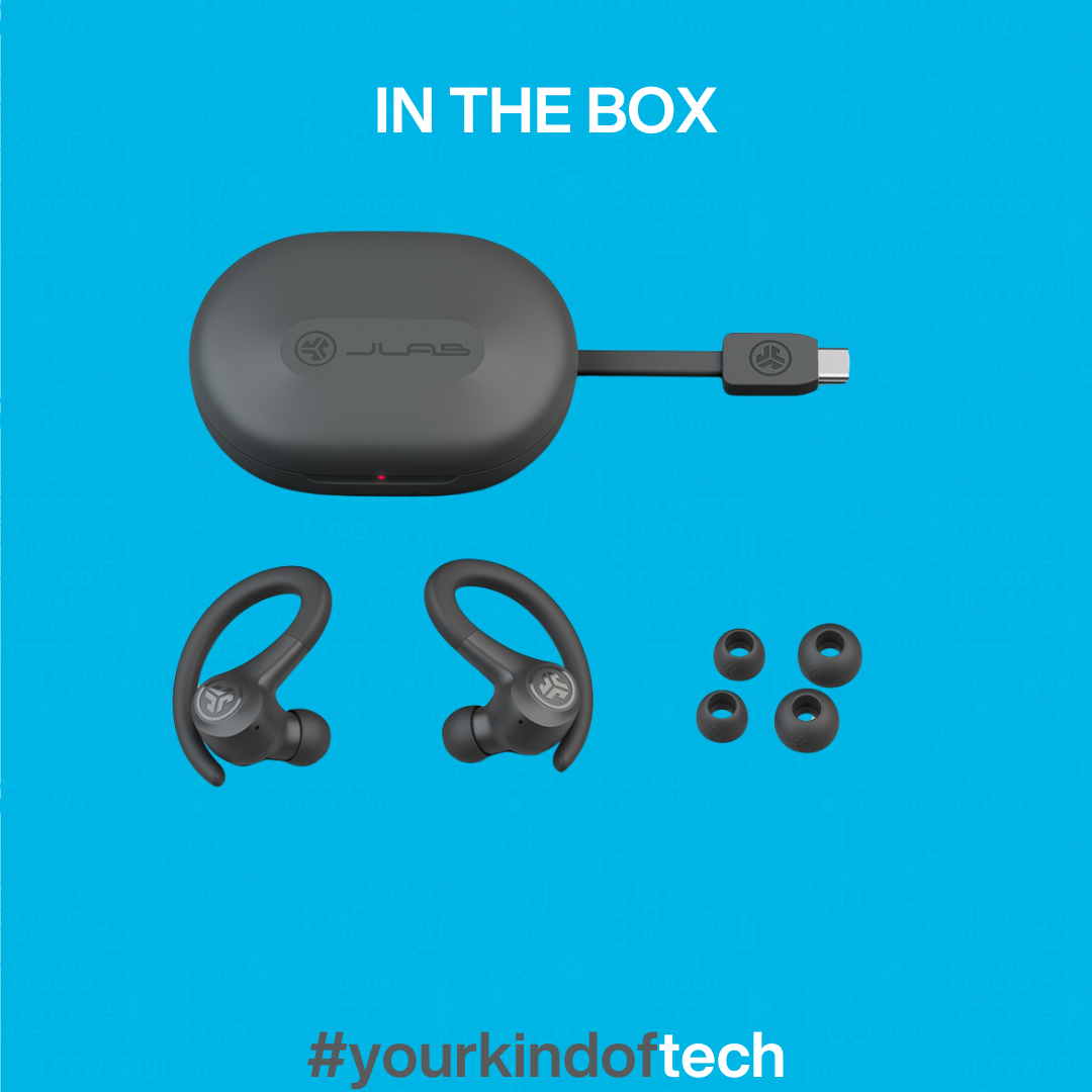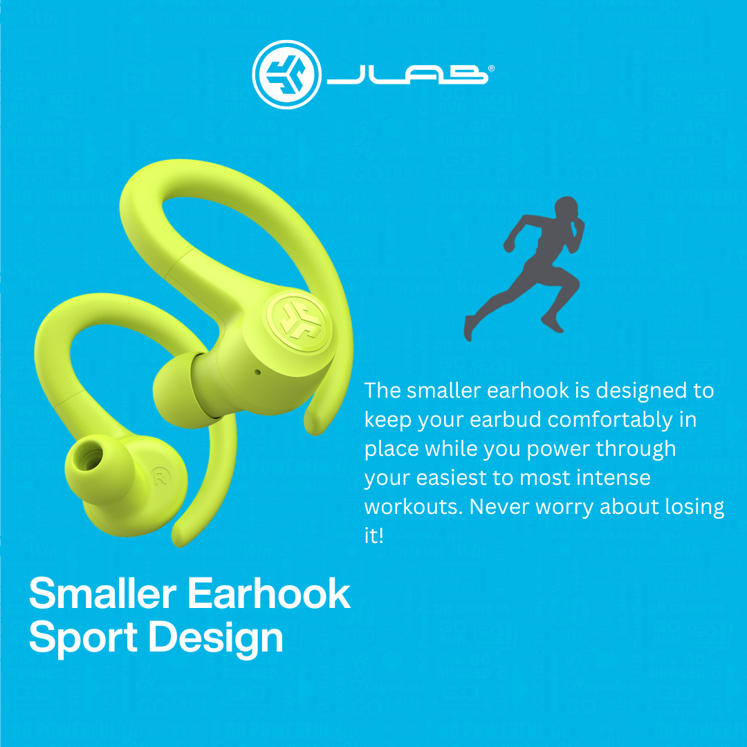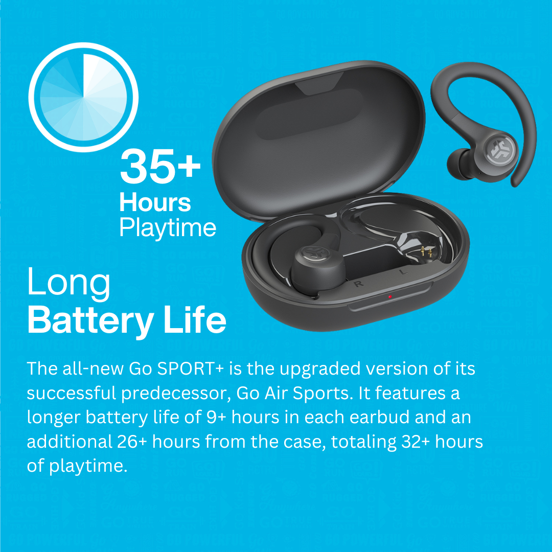 JLab GO Sport+ | Sports True Wireless Earbuds | IP55, 35+ hrs playtime, Google Fast Pair, Custom EQ, App Control, Over-Ear Sports earbud comfort fit