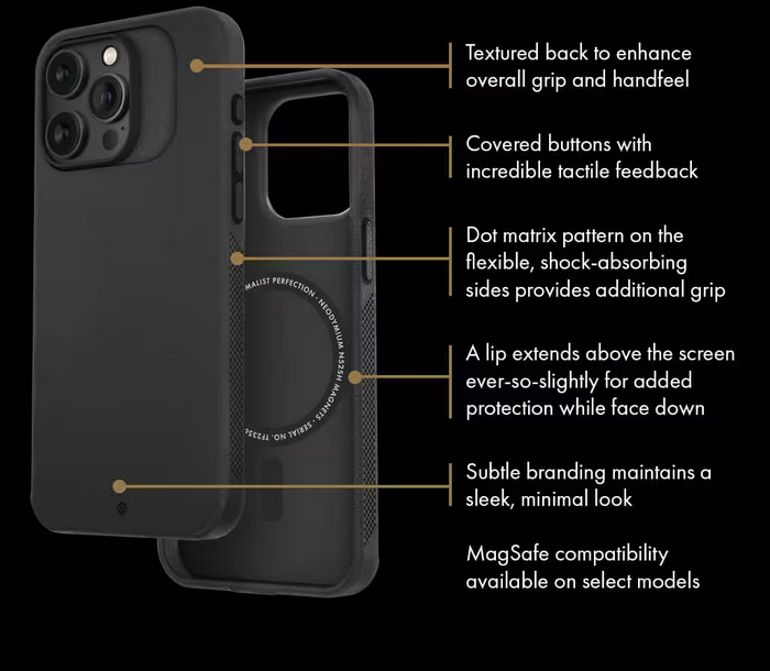 Looking for maximum drop protection, but hate bulky cases and gaudy aesthetics? Look no further. Synthesis is our most protective iPhone 15 Pro Max / iPhone 15 Pro / iPhone 15 case. Featuring a perimeter manufactured from ShockLiteTM, our proprietary, shock-absorbing polymer, combined with a tough, hard back shell, Synthesis provides robust protection against the world. And, all of this protection comes packaged in a sleek, elegant, minimalist aesthetic, fit for any occasion.