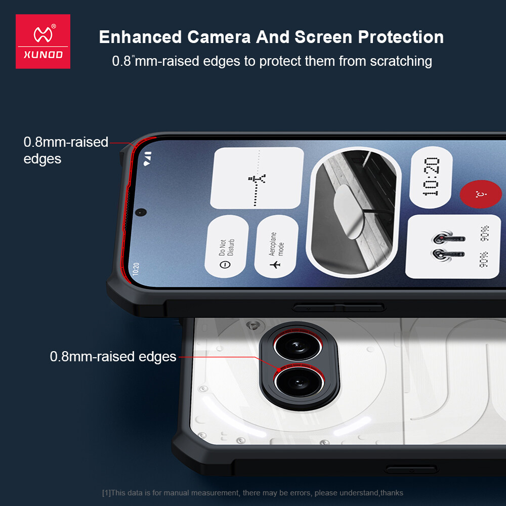 0.8mm raised edge to avoid the precious camera lens of the mobile phone, and the screen, so as not to be easily scratched, upgrade the whole lens package, design of the buffer suspension between the lens and the whole package, anti-drop laboratory feedback more secure, and lens gap structure around the whole package optimized