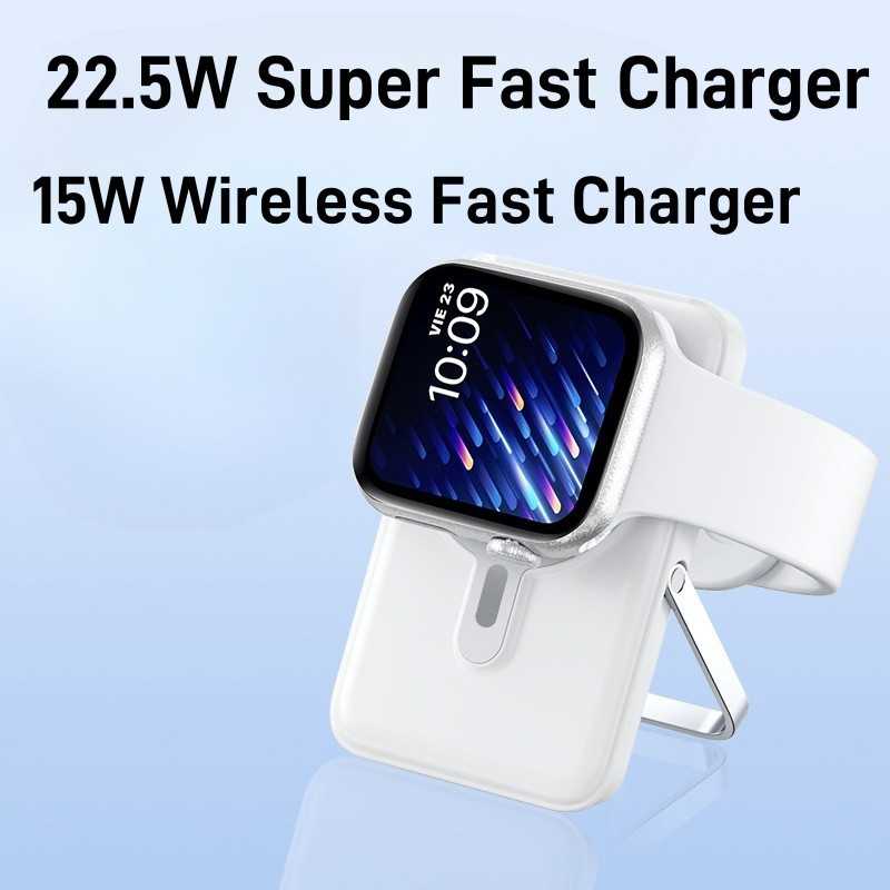 10000mAh Wireless Magnetic Powerbank Comes with Cables and Foldable Stand Suitable for all type of phones, watch and earphones that support wireless charge
