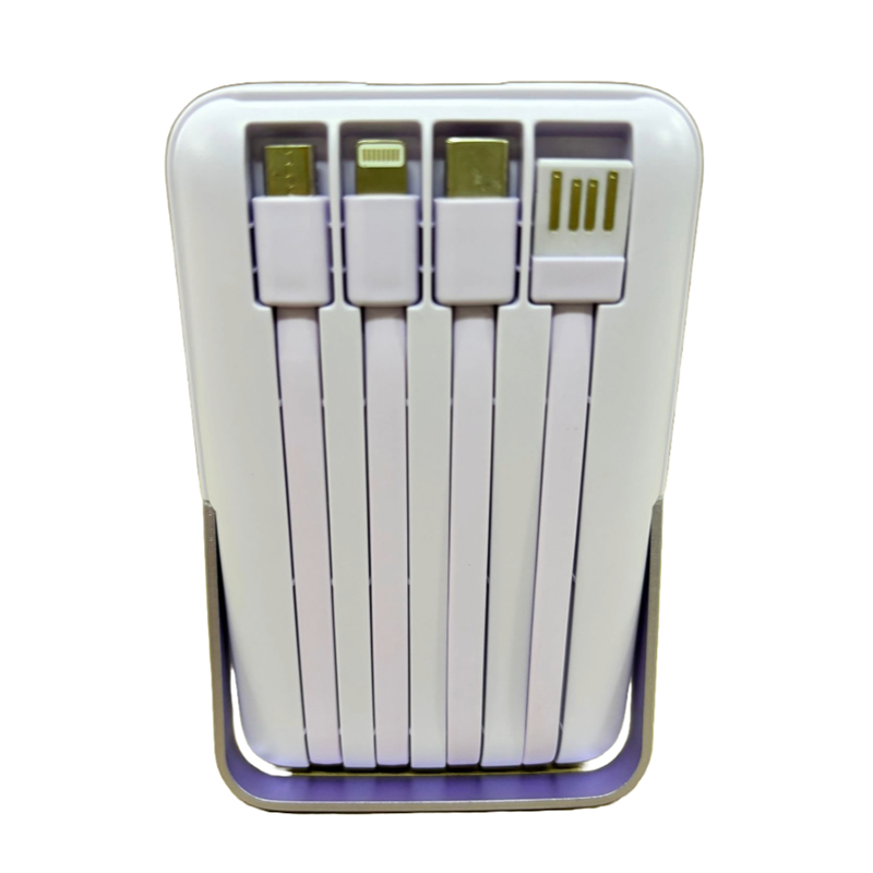 • Built-in Cables: Comes equipped with built-in Lightning, Micro, Type-C, and USB cables, making it suitable for a wide range of devices.