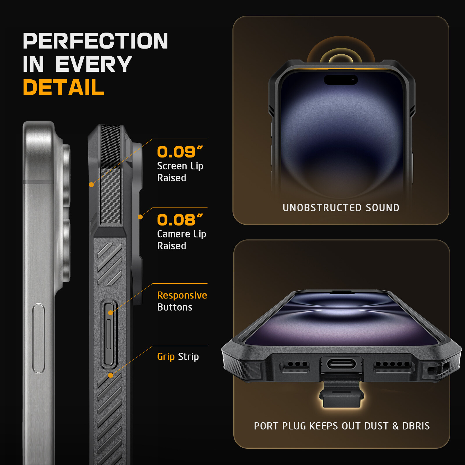 JETech Phone Case for iPhone New Pro Max 6.9 Inch, Non-Yellowing Shockproof Phone Bumper Cover, Scratch-Resistant Transparent Back (Orange)