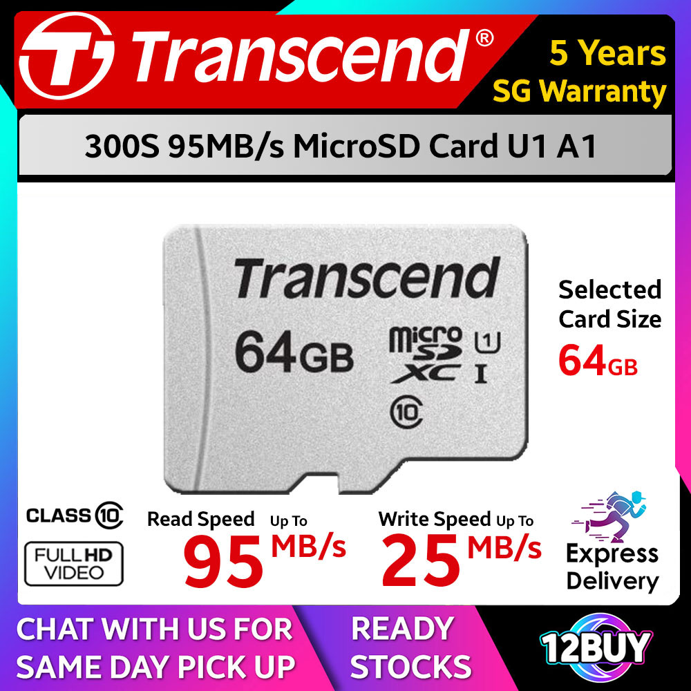 Transcend 300S MicroSD Card 95MB/s C10 16GB A1 32GB 64GB U1 128GB 256GB 512GB U3 Express Door Delivery 3 to 7 Days