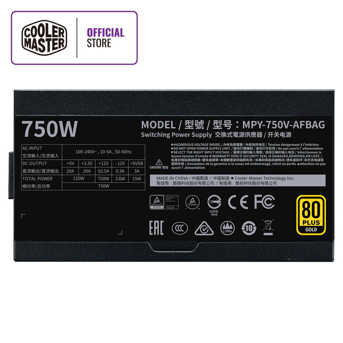 Cooler Master V750 Gold V2 PSU, 80 Plus Gold, Half Bridge LLC + DC-to-DC, 100% Japanese Capacitors, 16 AWG PCI-e Cables, Fully Modular Flat Cables