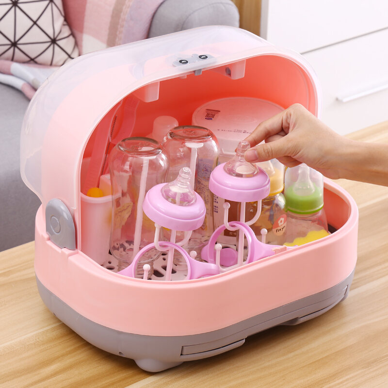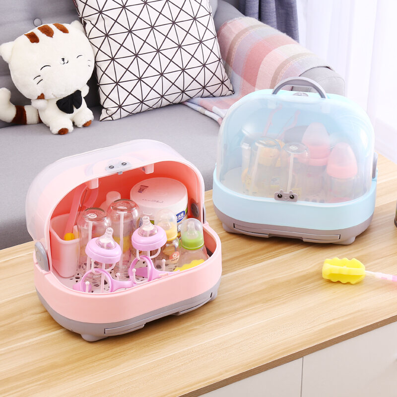 Baby Bottle Storage Box Portable Large Dust-Proof Drying Draining Rack Baby Tableware Organizing Dry Storage Box