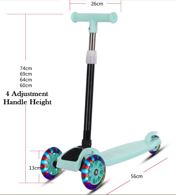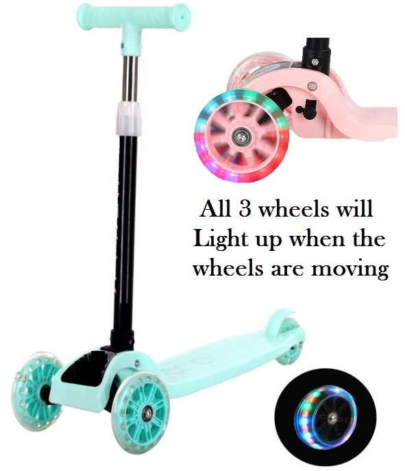Foldable 3 Wheels Kids Scooter with Light Up Wheels. Adjustable Height. No Assembly Required