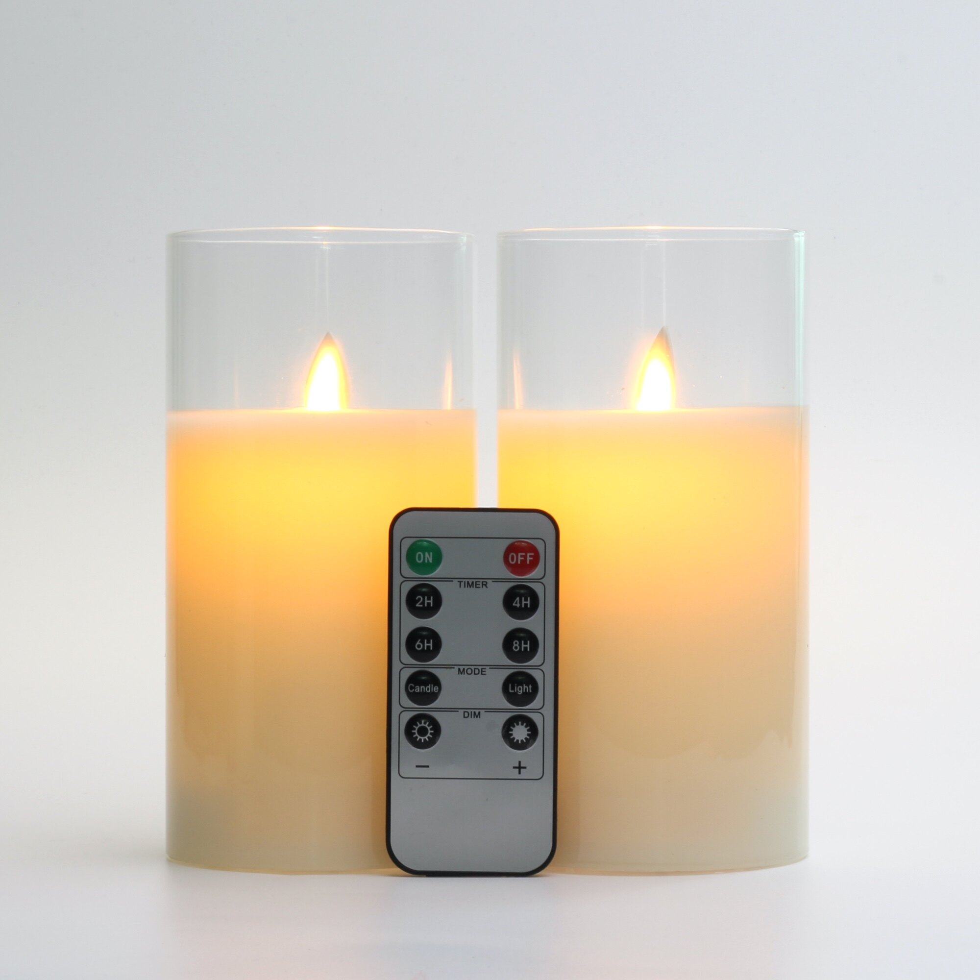 Glass Flameless Candles Set Real Wax Pillars & Moving Flame Wick LED Candles and 10-Key Remote Control with Timer, Battery Operated, Diameter 7.5cm