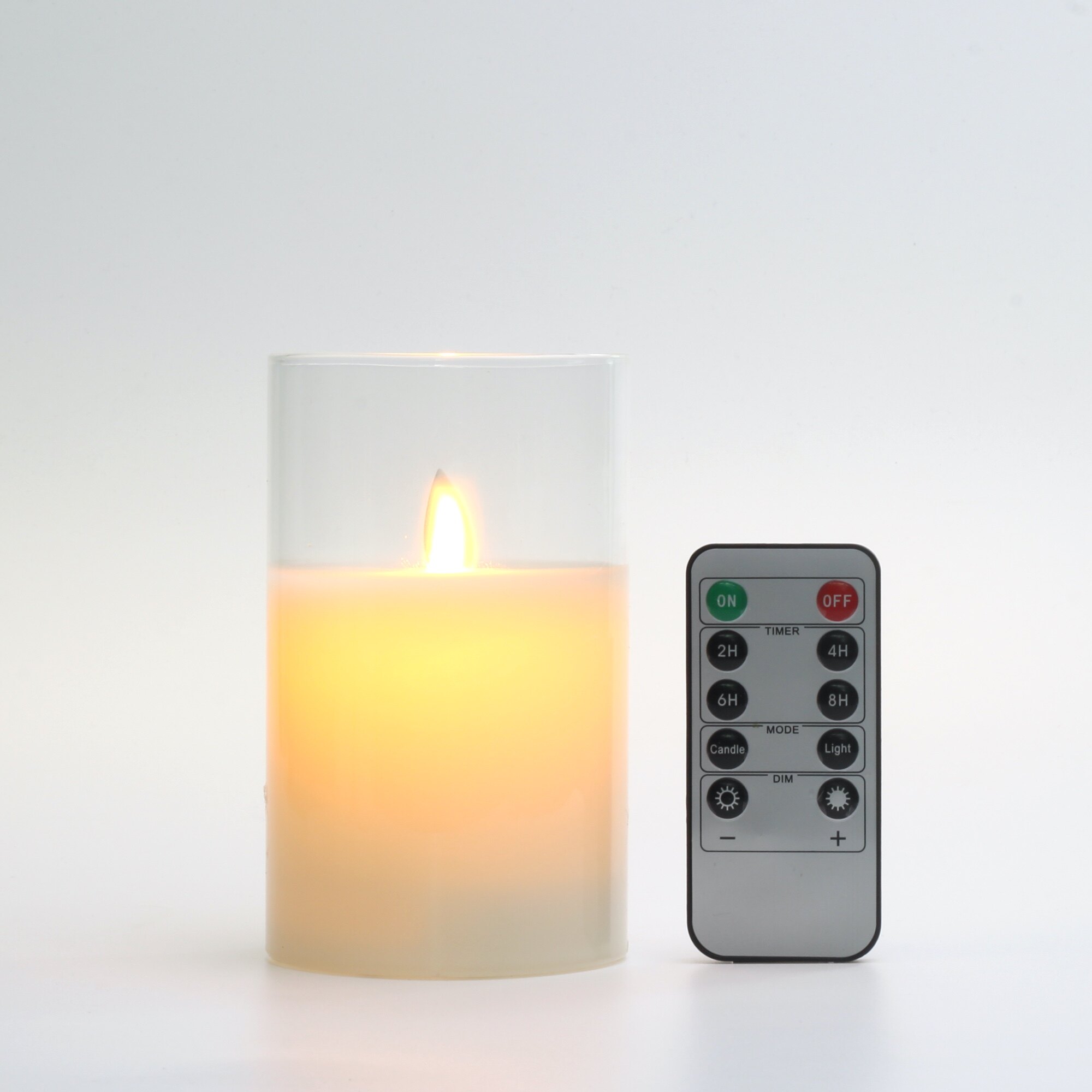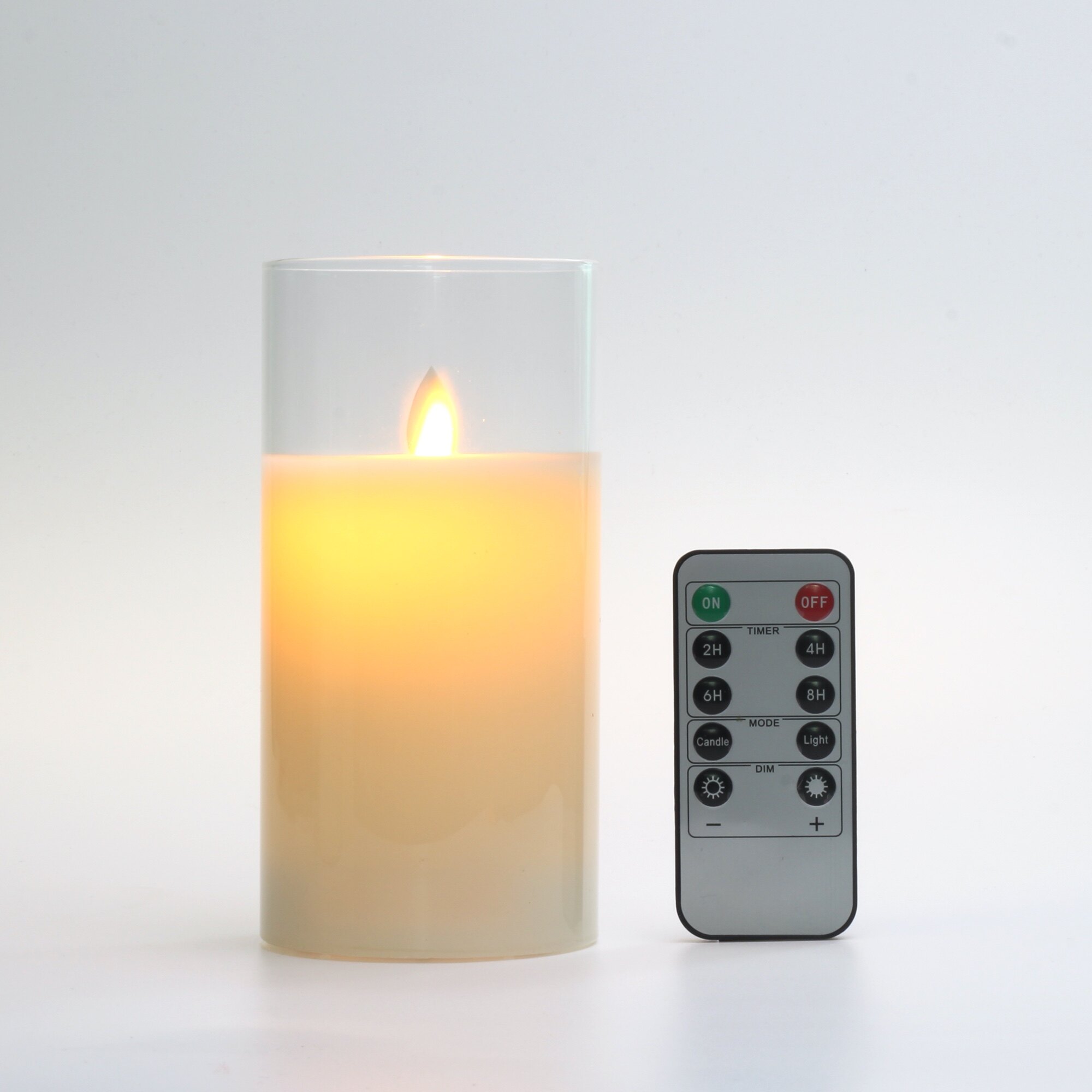 With 10-key remote control, you can adjust the brightness dimmer or brighter. Flickering flame effect and steady light mode available. Timer feature allows you to set 2H 4H 6H 8H, timed to automatically on and off, cycle every 24 hours.