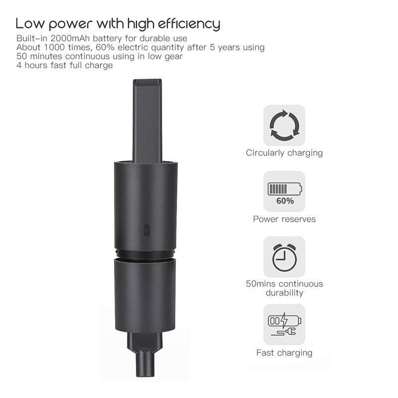 Feature:【3 In 1 Designs】The long and flat air collector cylinder for small stuff cleaning; the air blower cylinder represents strong wind; and the brush for surface cleaning.【Strong Wind Power】Strong power, powerful suction, high rotatory concentric, 2.0kpa powerful suction is permitted.【Long Durability】Built-in 2000mAh large-capacity battery can be charged and used for 1000 times. Can be fast fully charged in 4 hours.【Repeatedly Usable Filter Net】HEPA filter net is detachable for convenient water wash. Can be repeatedly used, eco-friendly and money-saving.【Cordless and Compact Vacuum】Ultra-lightweight and space-saving. You can put it on your desk, car, room, using it anytime, anywhere to clean all kinds of dust, scraps and hair.Easy to use:1) Install the cylinder needed.2) Long press the button for 2 seconds for power on.3) Short press the button for power off.4) Make sure to charge it when the battery is low for convenient use of the next time.Notice:1) The suction will get weak when the electricity is insufficient.2) Clean the mesh filter at least one time per month, it must be cleaned immediately if there is too much dirty.3) The cordless vacuum can't be touch to liquid.Specification:Voltage: DC5VCharging electricity: ≤1APower: ≥ 35WRotary speed: 26000-29000R/MinCharging time: Approx. 20MinSuction: 2.0kpaBattery capacity: 2000mAh*2USB length: 800mm±30mmOutput voltage: 7.4VWorking electricity: 5AItem size: 18.4x6.3cmPackage Content:1 x Vacuum Cleaner1 x Storage bag1 x Air blowing cylinder1 x Air collection cylinder1 x Brush1 x USB cable