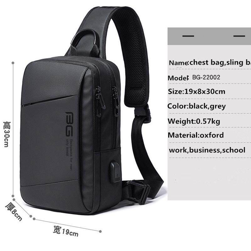 Korean Business Men's Anti-theft Sling Bags Waterproof Travel Shoulder Sling Chest Bag pack For Men with USB Port