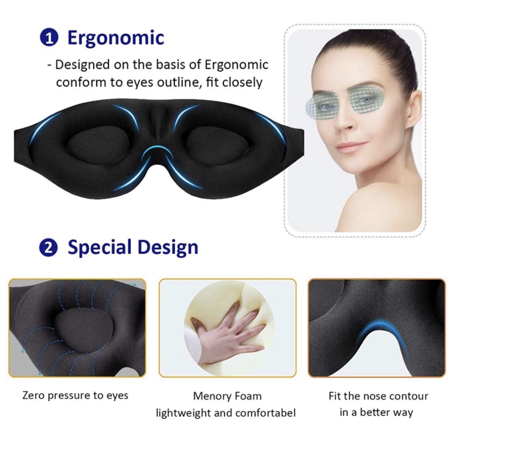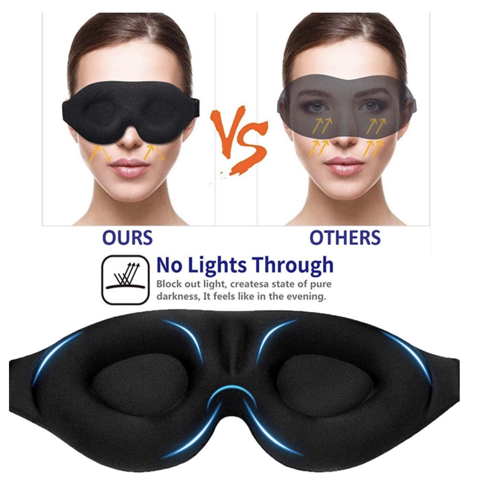 3D BLACKOUT MASK II - 3D Rest Eyeshade Travel Sleeping Eye Mask Memory Foam Padded Shade Cover Blindfold Sponge Eyeshade for Sleeping Silk Sleep Mask & Blindfold, Soft Eye Mask