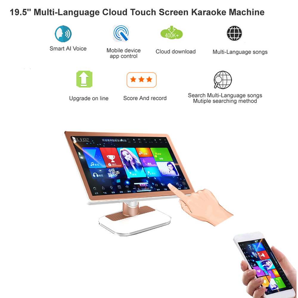 Karaoke Machine 19.5'' Infrared Screen ,Songs Machine,1TB HDD 20K Chinese,English Songs,300K Multi-Language songs on cloud for Download,Score,Record,Upgrade Online,Add songs in batch,Fast forward and
