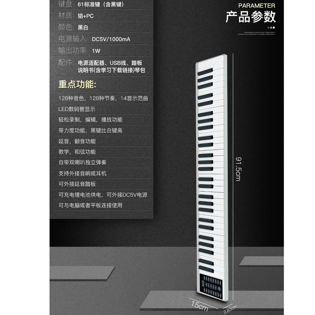 61 keys Digital piano Portable Traveler Electronic rechargeable MIDI Keyboard with Bluetooth