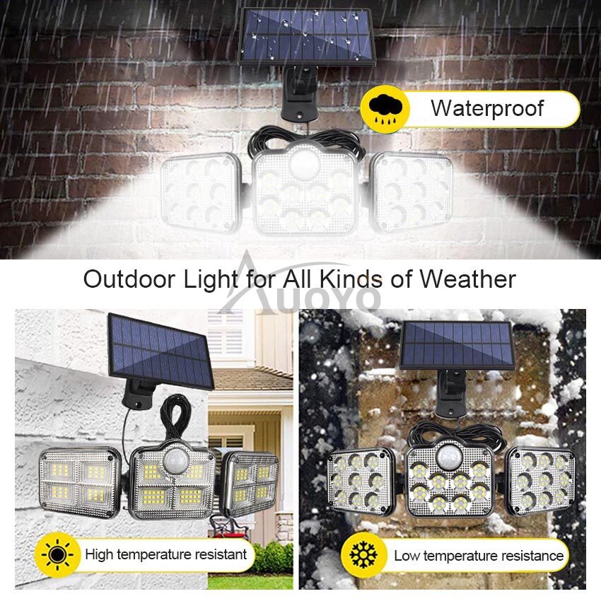 Auoyo 138/198 LED Solar Outdoor Lights Separate Lighting Wall Light 3 Modes Lamps Spotlight Motion Sensor Lamp Waterproof Wall Lamp Split Type 3 Way Solar Powered Lights Adjustable for Front Door Path
