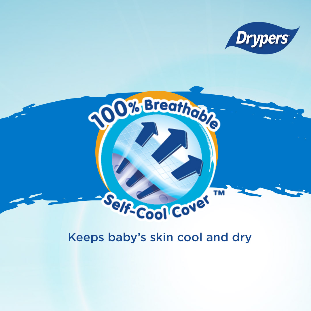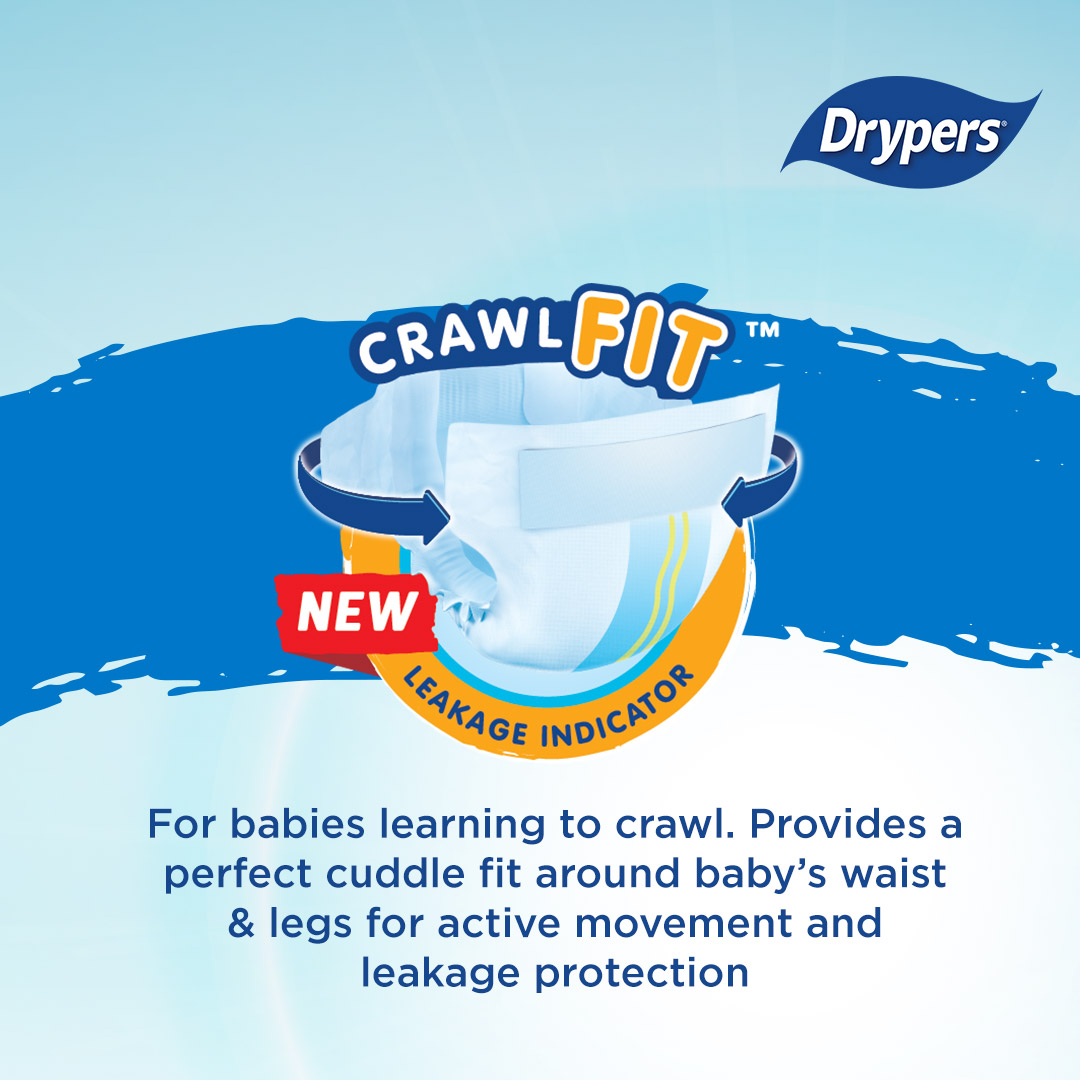 Our NEW Drypers Drypantz with improved DRY & FIT coupled with NEW PRO-SKIN™ pH balanced layer which protects baby from skin irritation. What’s more? It is ECO-GREEN, our commitment to caring for baby & nature.Drypers Drypantz is now with 6 AbsorbDryLayers™ effectively absorbs, distributes, and locks in urine to keep baby’s skin dry and comfortable for up to 10 hours dryness. Each of the layer are enhanced with the NEW PRO-SKIN™ pH Balanced Layer helps to balanced off the urine of baby so to protect baby from skin irritation. Made with 100% Breathable Self-Cool Cover™ that allows air circulation to keep baby’s skin cool and dry. Naturally releasing heat and moisture through micro-pores, even during hot weather. It also come with tailored FIT for babies at different growth stages. CrawlFIT™ for M sized specially designed for babies who are learning to crawl, provides a perfect cuddle fit around baby’s waist & leg for active movement & leakage protection. MoveFIT™ for L-XXL sized provide great fit & leakage protection as baby grows & discovers the world around him/her. NEW Drypers Drypantz is now come with wetness indicator to remind parents to change when it turns from yellow to green! Making diapering worry free; and to focus on child’s development.As our commitment to caring for baby & nature, it is ECO-GREEN! Manufactured without chemicals that are harmful to the environment (MIT/CMIT, BPA, PVC, Dioxin, Heavy Metal, Phthalate and Organotin), eco-friendly ink and USDA certified, both our diaper bag & box can be recycled with the relevant recycle system.