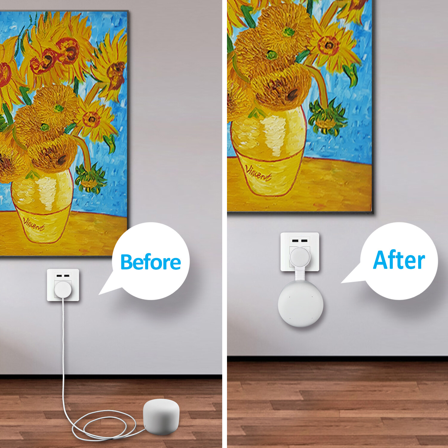 • Easy to installation --- No need any tools , and the Google Nest Point can be mounted sturdily on the plug . So easy to use this smart wall mount for your Google Nest Point .