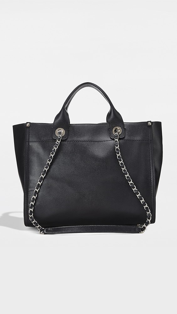 Chanel Black Caviar Studded Deauville Shopper Tote