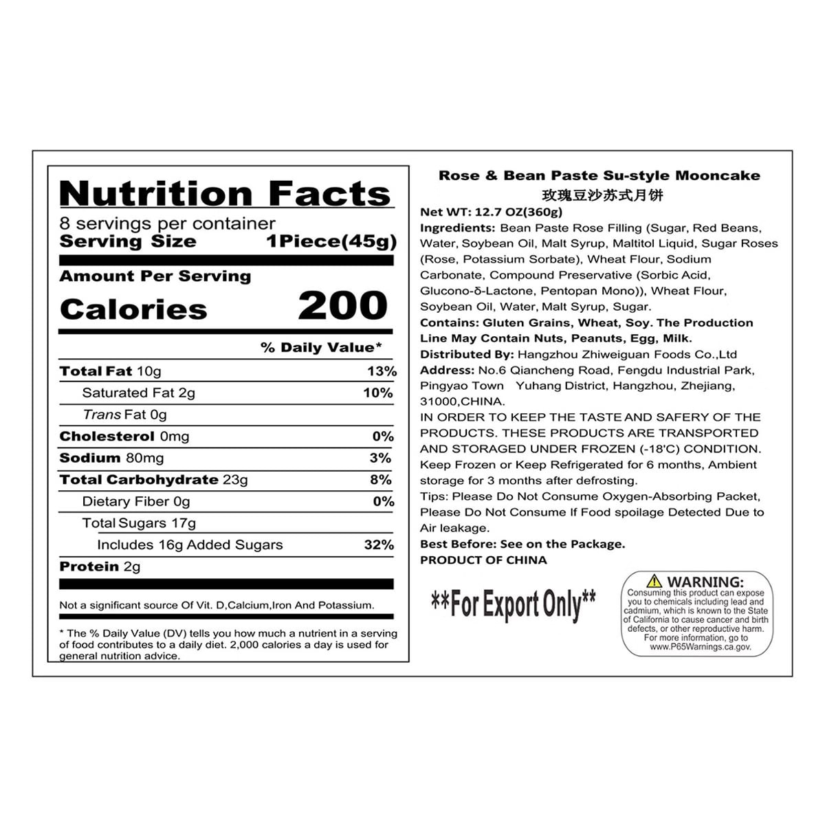 Xing Hua Lou Rose Bean Paste Moon Cake 1pc 100 g
