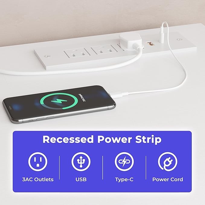 【Matching Plugs】 The computer desk’s plug holes fit perfectly with the plugs, allowing the plugs to be locked to the office table and not take up desktop space, complete with Power Outlets, USB & Type-C Outlet for convenience.