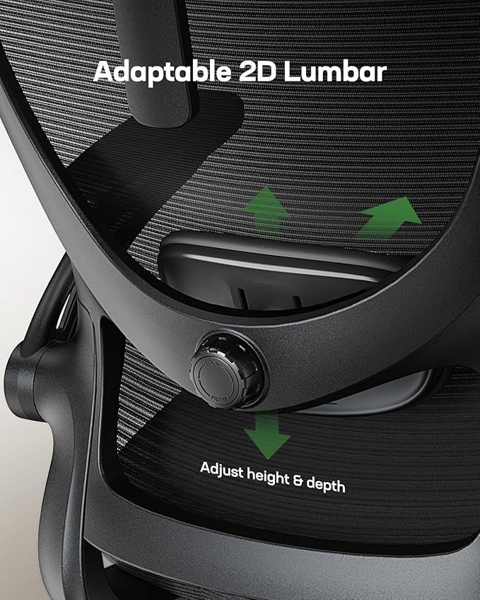 ADJUSTABLE COMPUTER CHAIR: The home office desk chair lumbar support system adjusts 1.18" forward & backward and 2.16" up & down to properly match your height and body shape. Good lumbar support will minimize strain or pain on the lumbar discs in your spine.