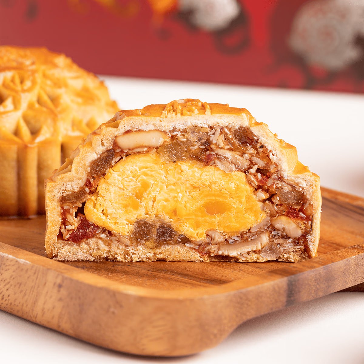 Mondkuchen mit doppeltem Eigelb und verschiedenen Nüssen
