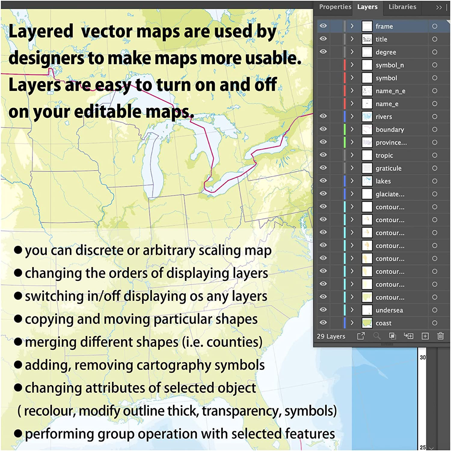 Included in the database are maps of the entire world, large states, and surrounding areas, as well as country-specific data for all 196 countries, all in white maps.