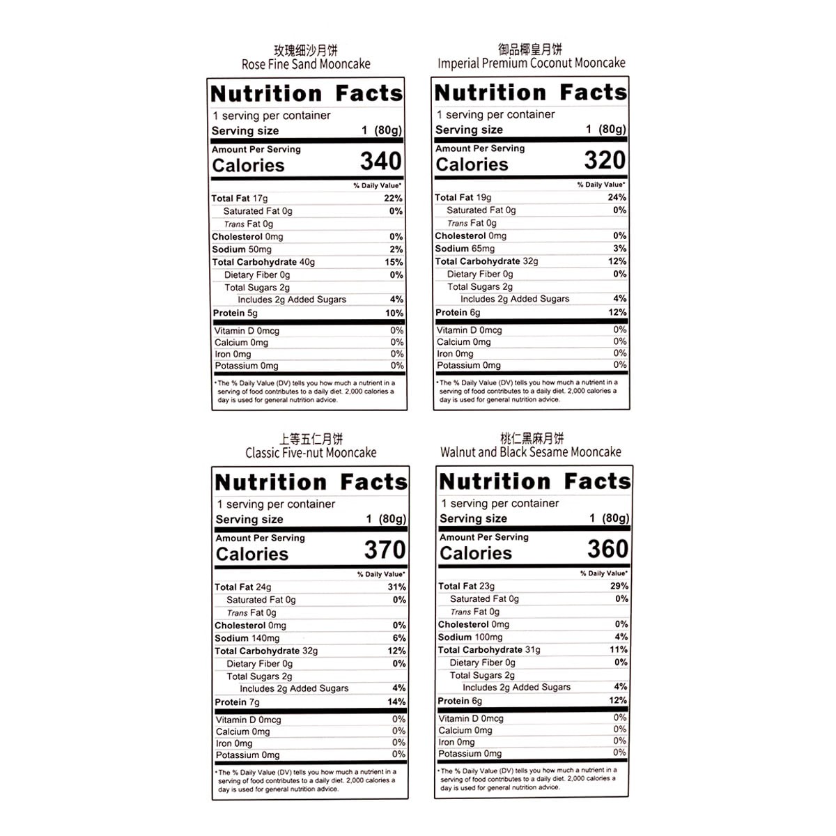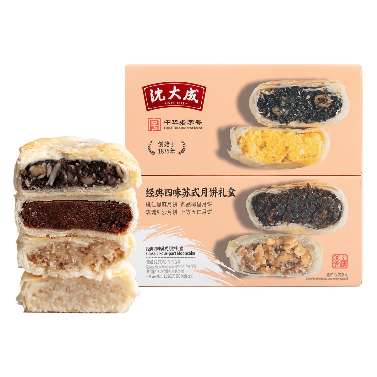 Mid-Autumn Festival Mooncakes - Classic Four Flavors - Suzhou-Style Mooncake Gift Box (4 pieces, 320g) - Black Sesame, Peach Kernel, and Five-Nut Flavor