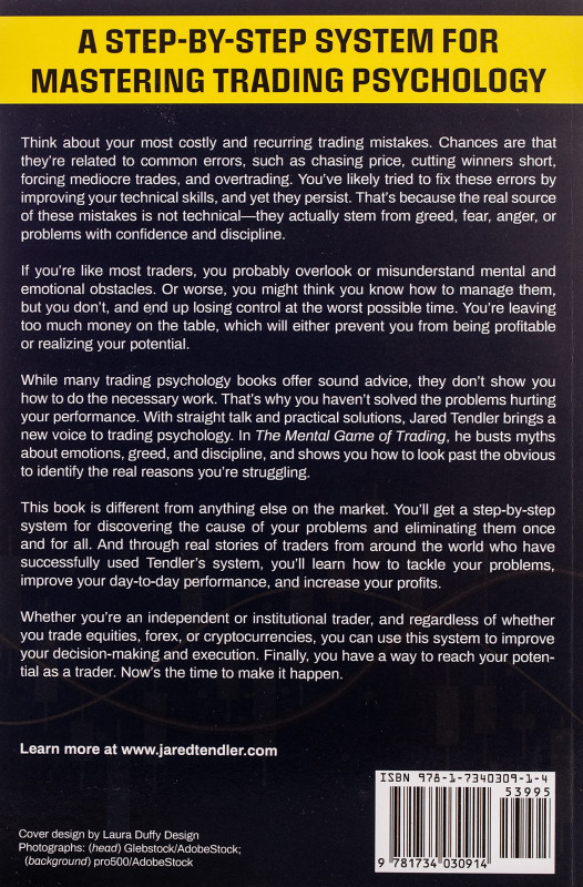 While many trading psychology books offer sound advice, they don't show you how to do the necessary work. That's why you haven't solved the problems hurting your performance. With straight talk and practical solutions, Jared Tendler brings a new voice to trading psychology. In The Mental Game of Trading, he busts myths about emotions, greed, and discipline, and shows you how to look past the obvious to identify the real reasons you're struggling.